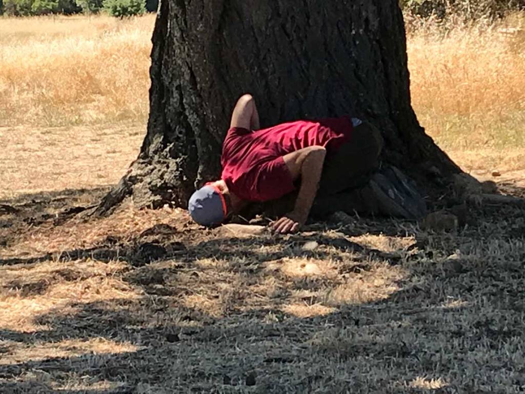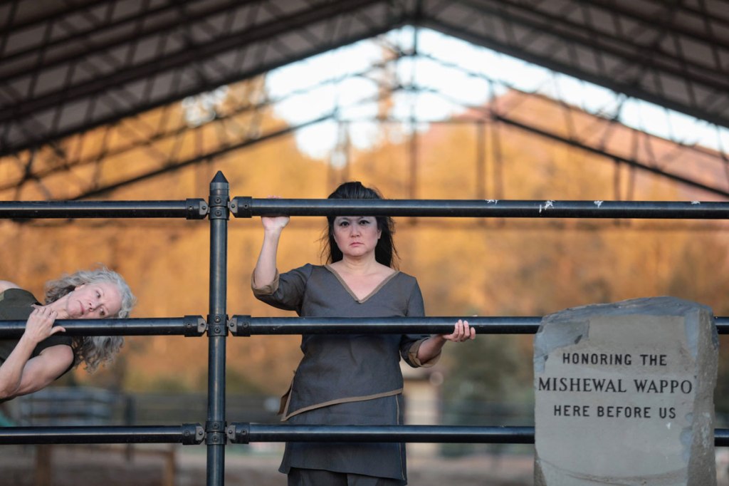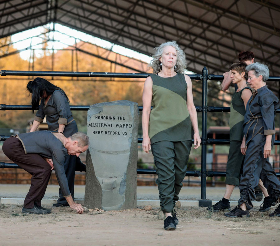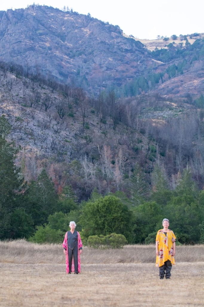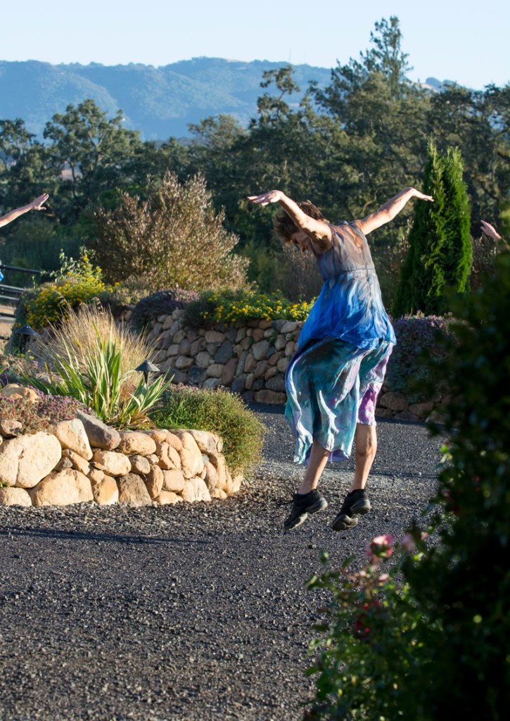 Site-based choreographer Joanna Haigood suggests that, “…a place is a poetic expression of a site and the accumulation of the experiences it contains. If you’re quiet enough, if you’re still enough, you can perceive the resonance of its experience….” (2009, p. 55) We, too, were trying to create for ourselves and the audience a heightened sense of the site and to honor the Mishewal Wappo, who inhabited this land before us. The piece shifts from a sense of desolation, loss, and isolation to one of connection, renewal, and resilience—inspired by the phoenix rising.