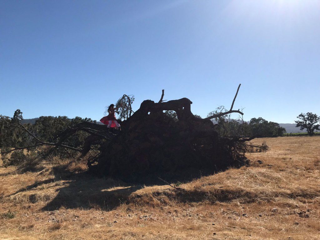 The images for Fallen Elders emerged after the 2017 Sonoma County wildfires toppled a tree. Over time, the tree’s colors grew more muted and the tree began to sink and settle into the earth. The setting reminded us of “the health of the land is its capacity for self-renewal” (Lauret Savoy, 2015, p. 47). Environmental writer Lauret Savoy says that “we make our lives among relics and ruins of former times, former worlds. Each of us is, too, a landscape inscribed by memory and loss” (2).