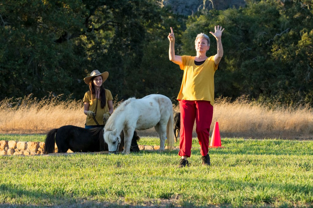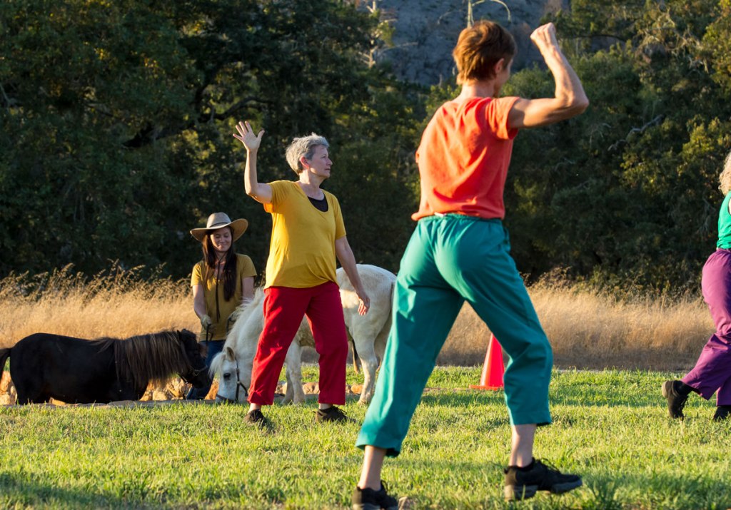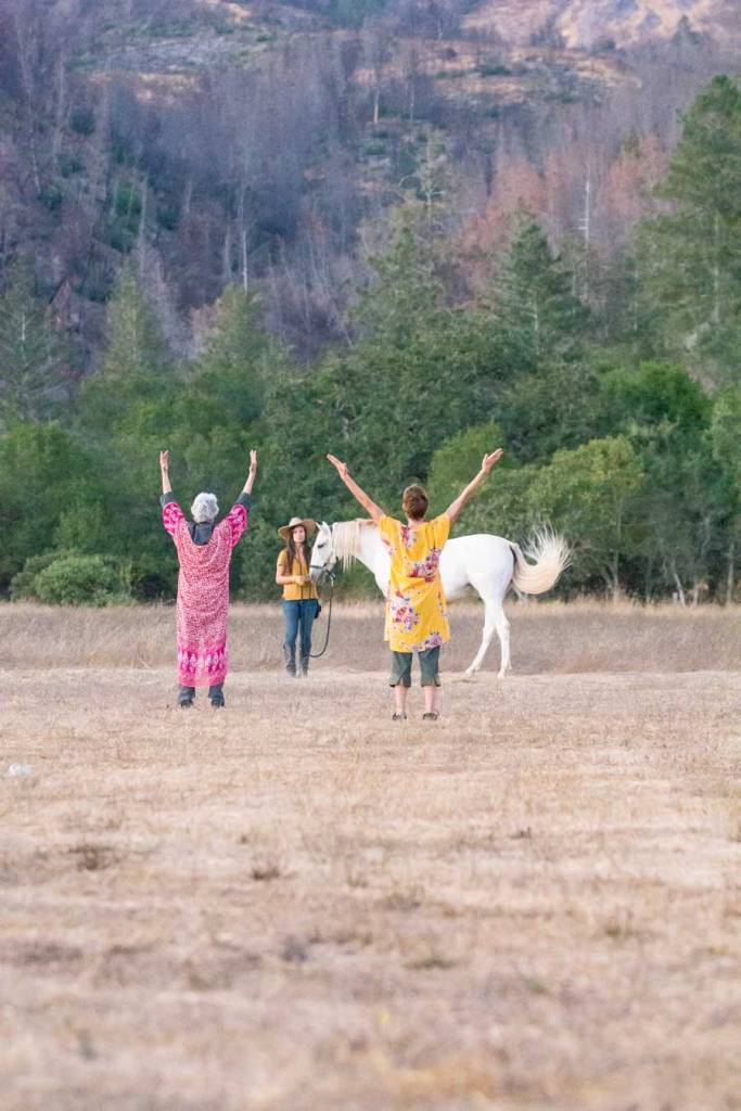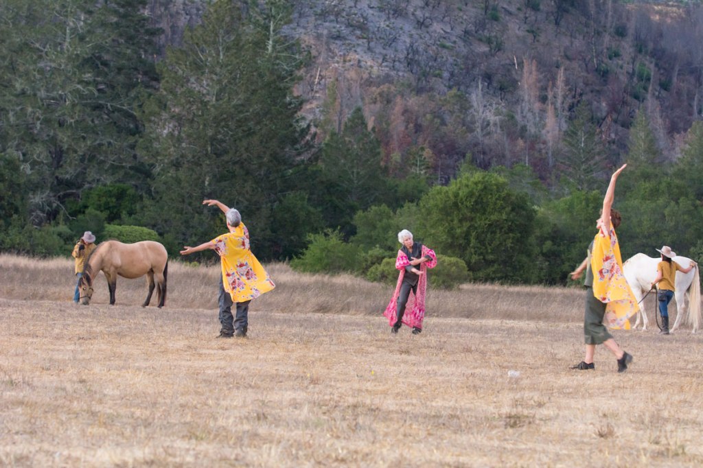 Understory Dances was a site-specific suite of ten dances and somatic explorations performed at an equine experiential education facility in Sonoma County, California in 2018. The performances brought artists and community members together to investigate and participate in what I describe as the collective kinesthetic understory (see Katz, 2019). The suite constitutes a dialogue with the environment; the natural elements and the seasons, the land and trees, and the creatures that inhabit the area guided the dancers’ artistic impulses and my choreographic processes. The dances were created to connect dancers and audience members with one another as well as with site/place and history through shared aesthetic, kinesthetic, and kinetic involvement.